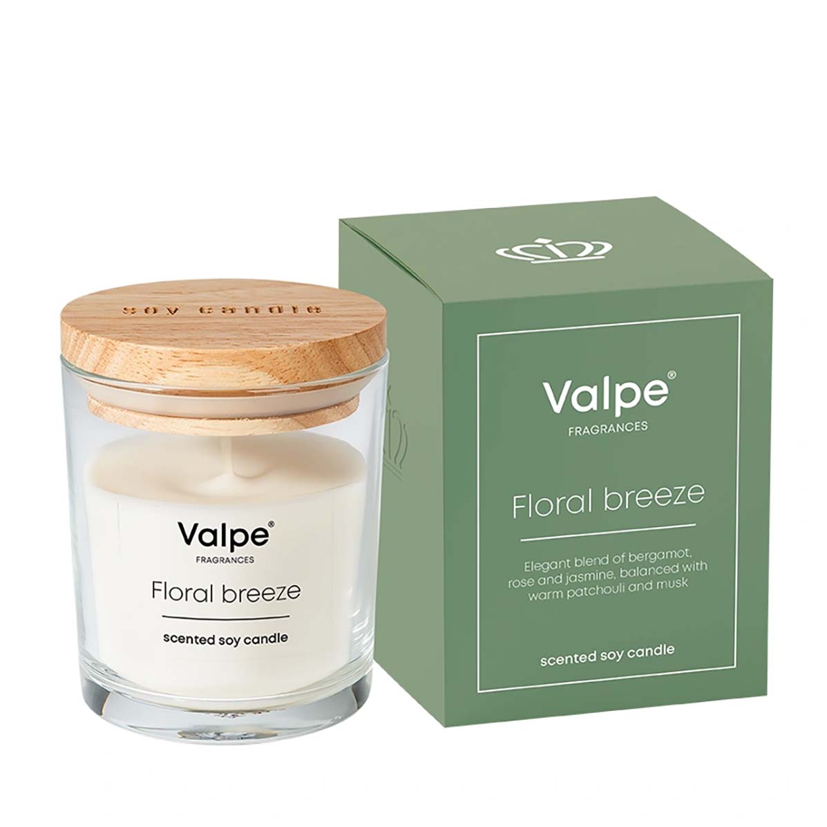Elegancka świeca sojowa marki Valpe zamknięta w minimalistycznym szklanym słoju z sygnowanym, drewnianym wieczkiem. Stylowy design i naturalna forma sprawiają, że doskonale komponuje się zarówno w nowoczesnych, jak i klasycznych wnętrzach.
