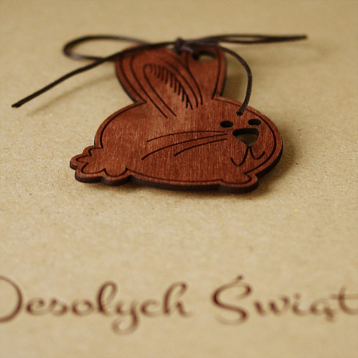 • dekoracja: drewniana aplikacja - zajączek, przewiązana sznurkiem