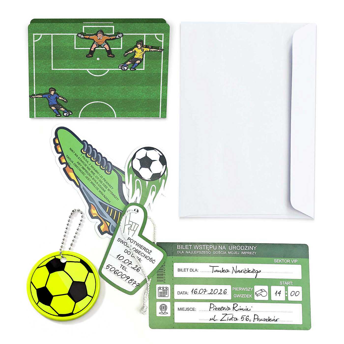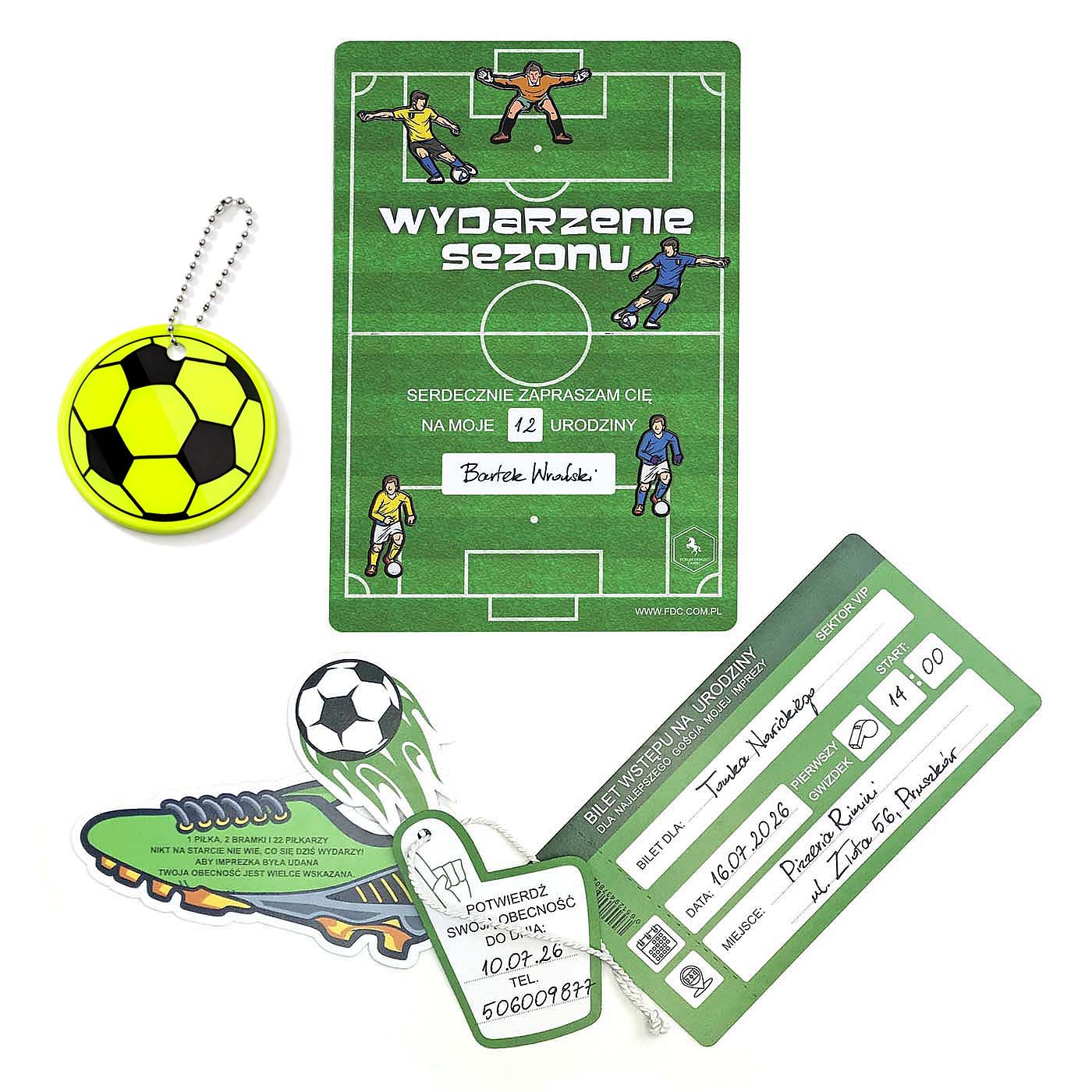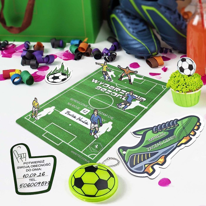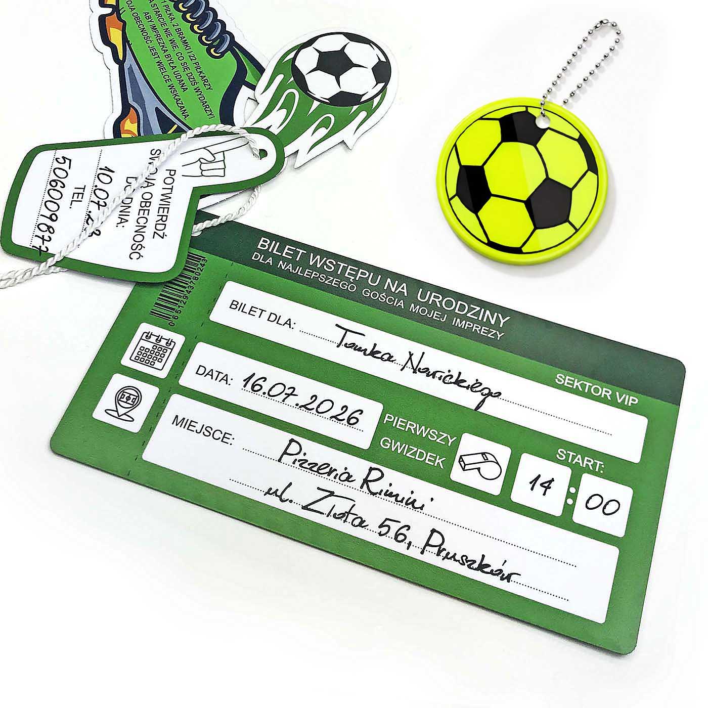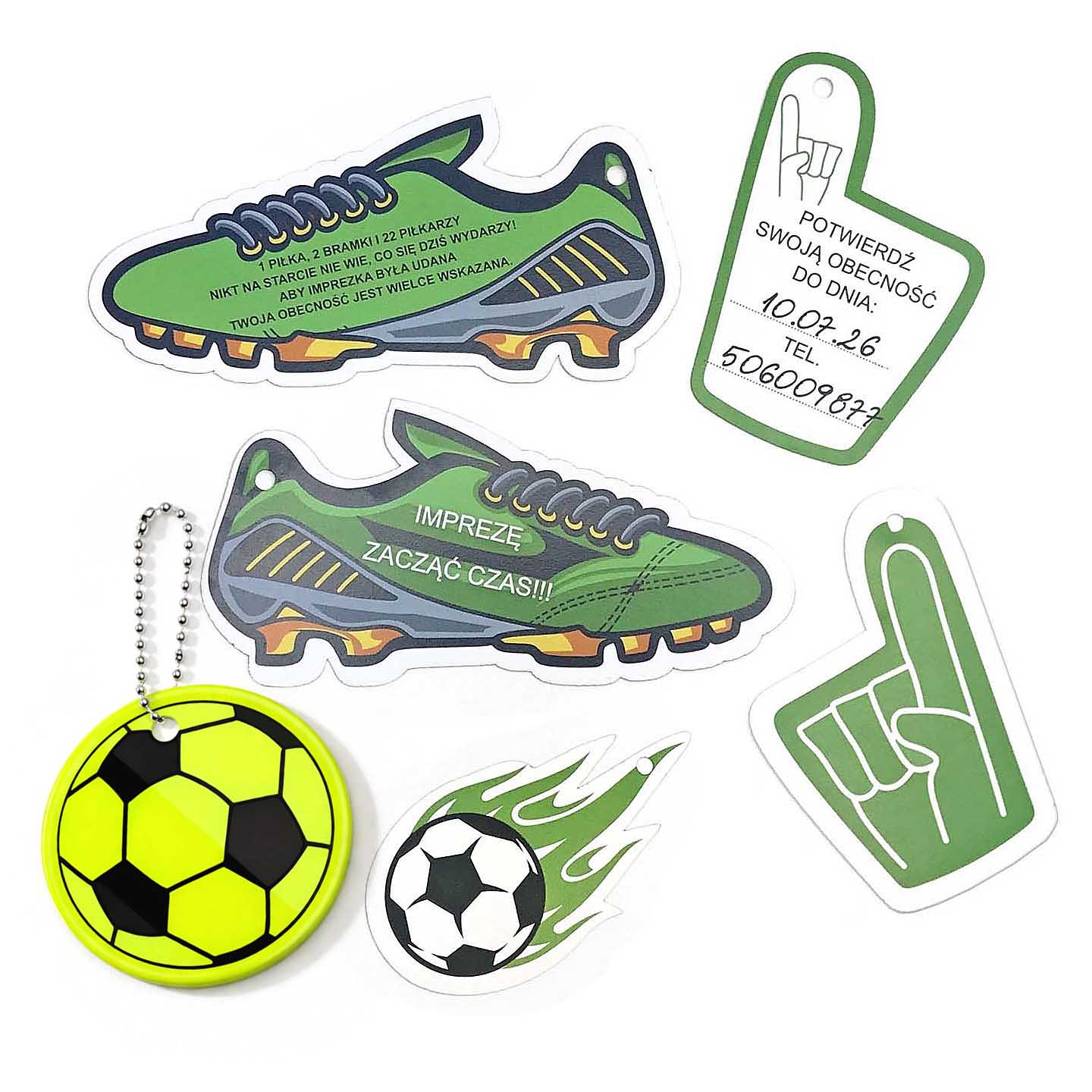 Do zaproszenia dołączony jest brelok odblaskowy - Odblaskowa Zawieszka Piłkarska o wysokiej jasności w nocy. To praktyczny i efektowny dodatek dla fanów futbolu - idealny jako dekoracja plecaka lub marker do kolarstwa i biegania. Mały gadżet, który robi duże wrażenie i zostaje z gośćmi na długo po imprezie.