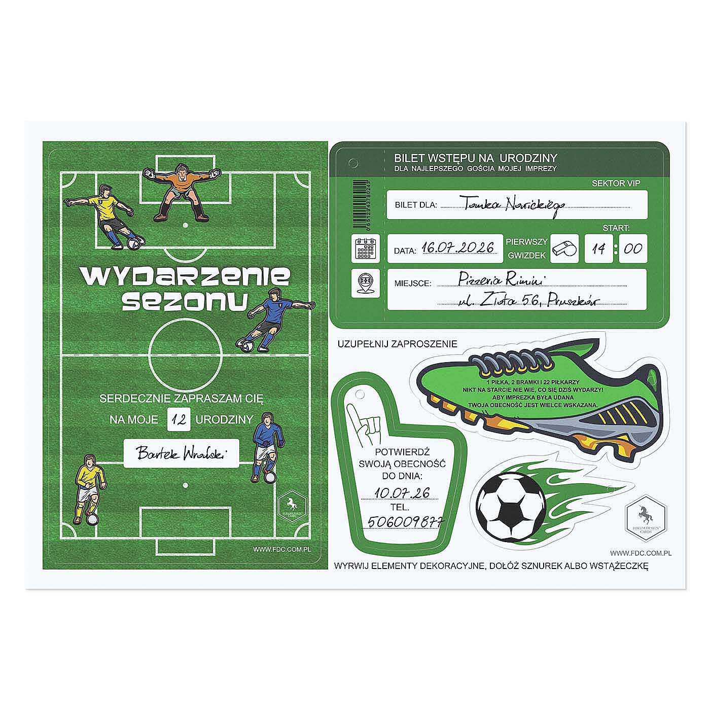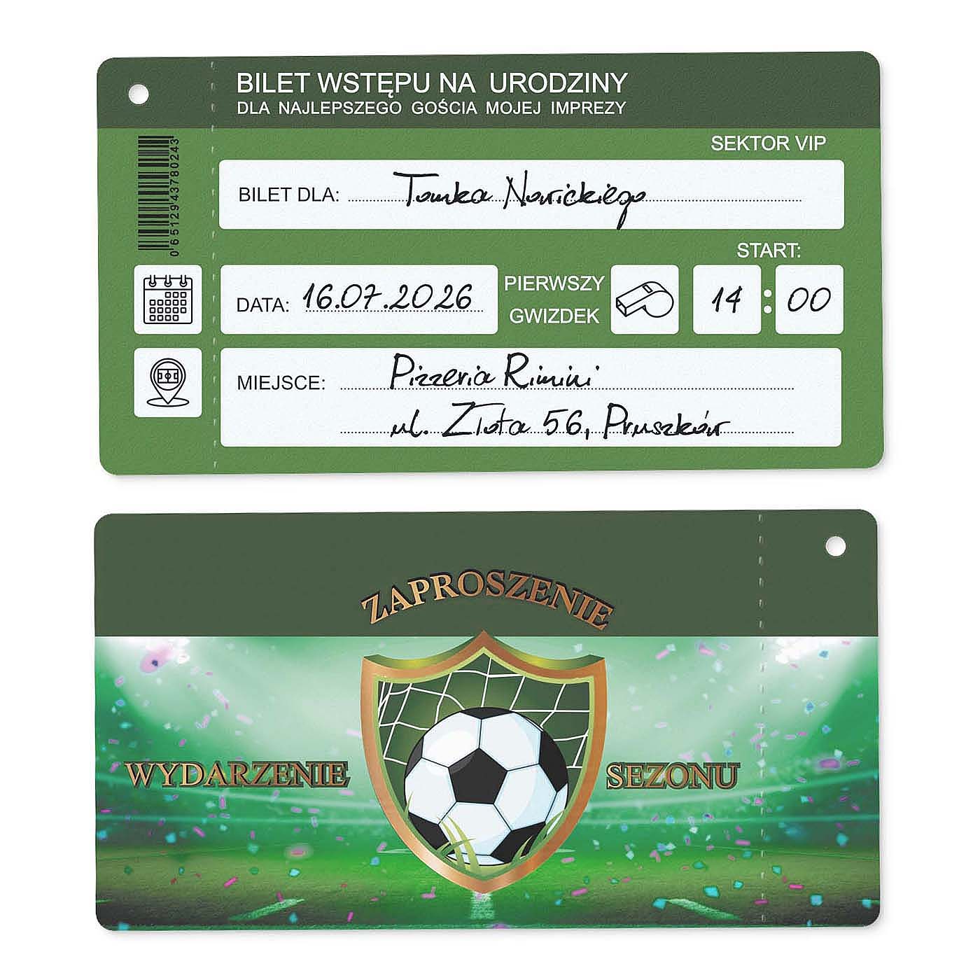 / Zaproszenie na Urodziny, Gotowe do Wypisu Bilet na Mecz Piłkarski, Futbol