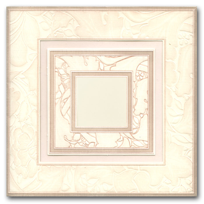 Okładka wykonana z matowego papieru w kolorze ecru z delikatną fakturą krateczki. W tle nadrukowane motywy kwiatowe. Ozdobione dodatkowo perłowymi ramkami. Całość w tonacji beżu.