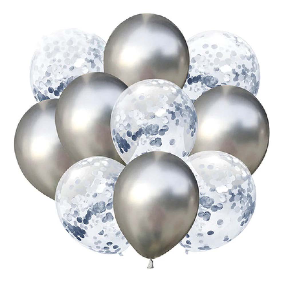 / Balony zestaw 10 szt. srebrne konfetti na urodziny, wesele