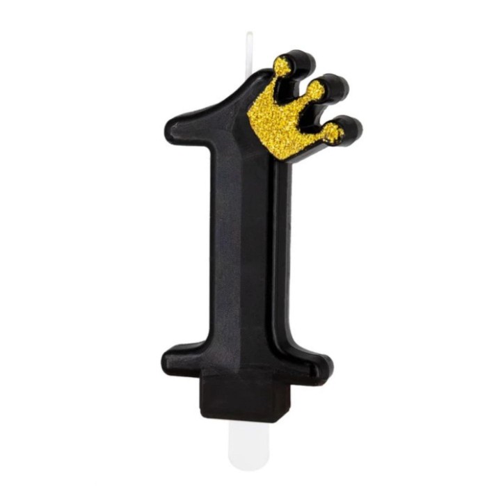 Świeczka czarna ze złotą koroną cyfra 1 | Świeczki |