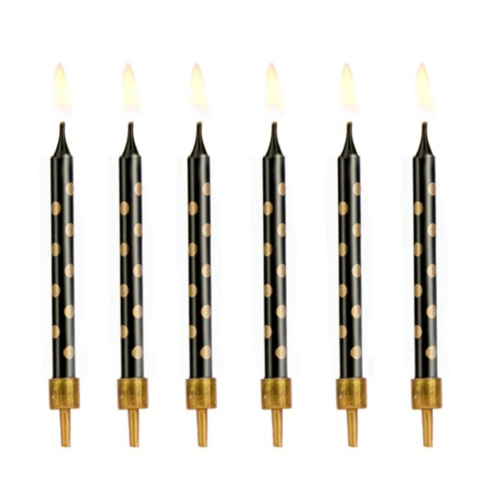 Świeczki urodzinowe czarne w złote kropki 12szt | Świeczki |