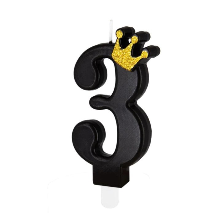 Świeczka czarna ze złotą koroną cyfra 3 | Świeczki |