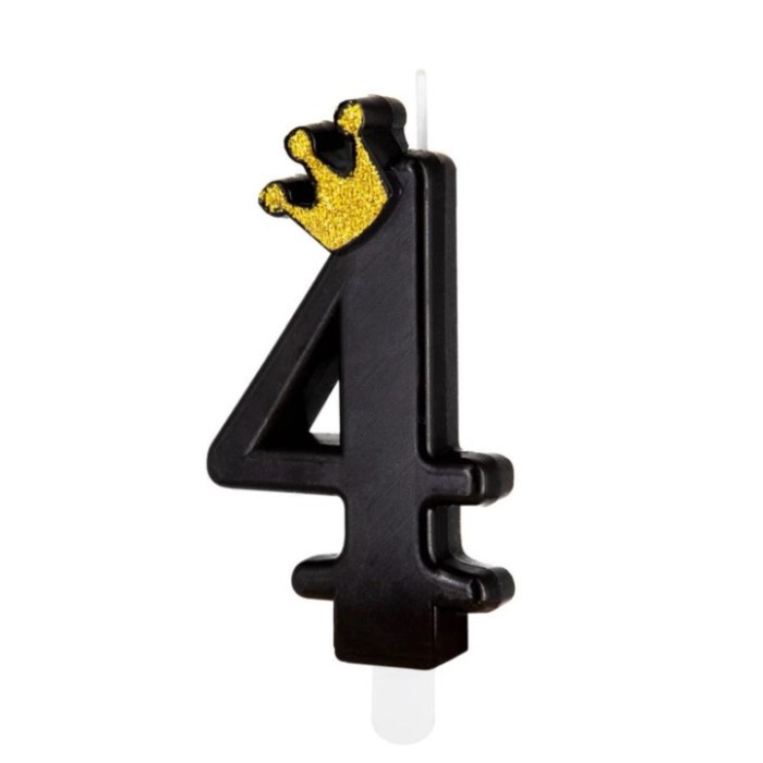 Świeczka czarna ze złotą koroną cyfra 4 |